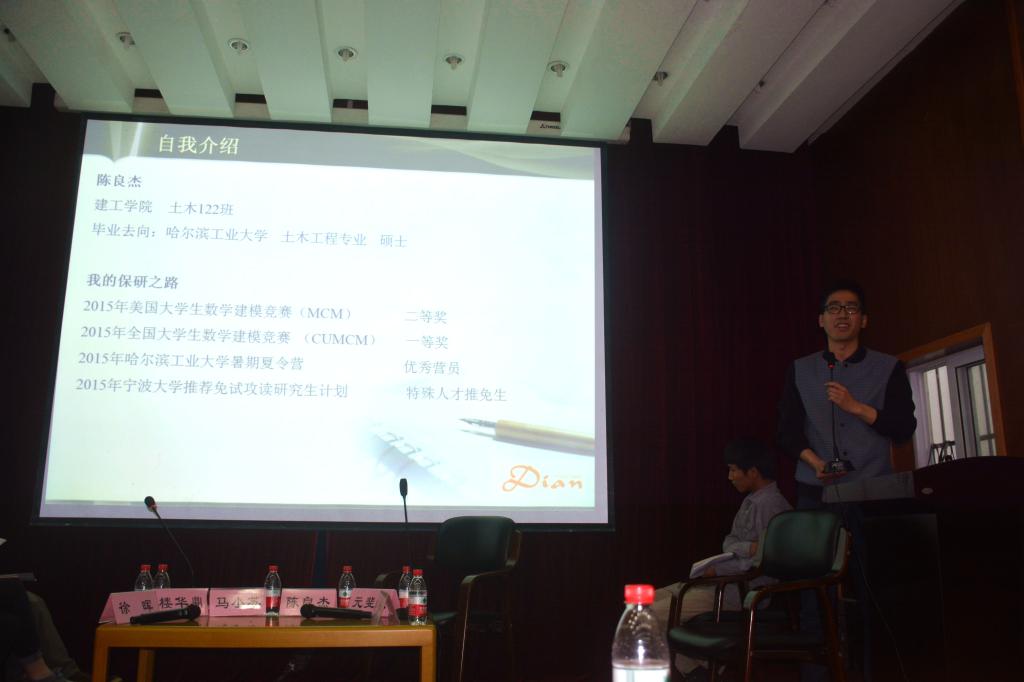 开幕式中,学院党委副书记首先指出要将建筑文化节持续不断地发展成为一个具有校友影响力的品牌,同时不断挖掘学院创新创业工作的内涵,培养出更多优秀的建工学子。随后,马小苏等同学分别介绍了对考研信息的了解过程以及有效的复习方法。其中,还强调了明确报考学校、合理安排时间、科学利用网络资源以及有效及时地与导师沟通等问题。被保研至哈尔滨工业大学土木工程系的陈良杰同学分享了其保研之路并给学弟学妹们提出建议。最后,同学们踊跃提问,如考研准备时间、考研成功与否和平时成绩的关系等问题。