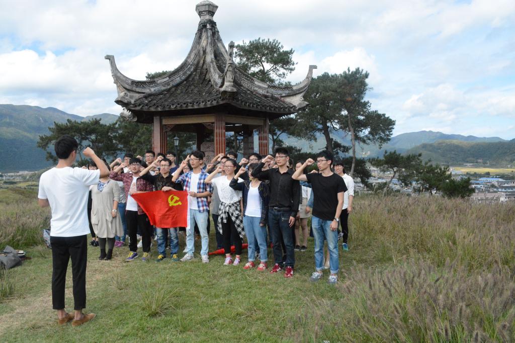 之后,在王朝东老师的带领下,各位党员攀登鹿山,开展了此次活动的主要内容:“新党员宣示,老党员重温入党誓词。”土木系学生第一党支部的辛金发同学带领各支部党员,在党旗面前进行宣示。大家再次感受到了作为党员的责任感和使命感,时刻准备着为共产主义事业而奋斗终身。