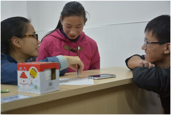 “听世界”项目自成立以来,便致力于为盲人朋友送上电子产品,希望他们用耳朵代替眼睛阅读,接触到更加丰富多彩的世界。活动现场,同学们积极与小朋友沟通、交流,听他们讲述自己平凡但不普通的生活。了解孩子们的兴趣爱好后,有针对地为他们在MP3中下载了有声读物和歌曲。同学们期间还展开了“你讲我猜”的游戏互动,孩子们积极参与其中,竞相猜题,从中收获了不少乐趣,一个个脸上洋溢着幸福快乐的笑容。最后,同学们为小朋友送上来事先准备好的礼物——玩偶、杯子和MP3,小朋友接过礼物后十分礼貌地一一道谢,并与同学们一起合影留念。