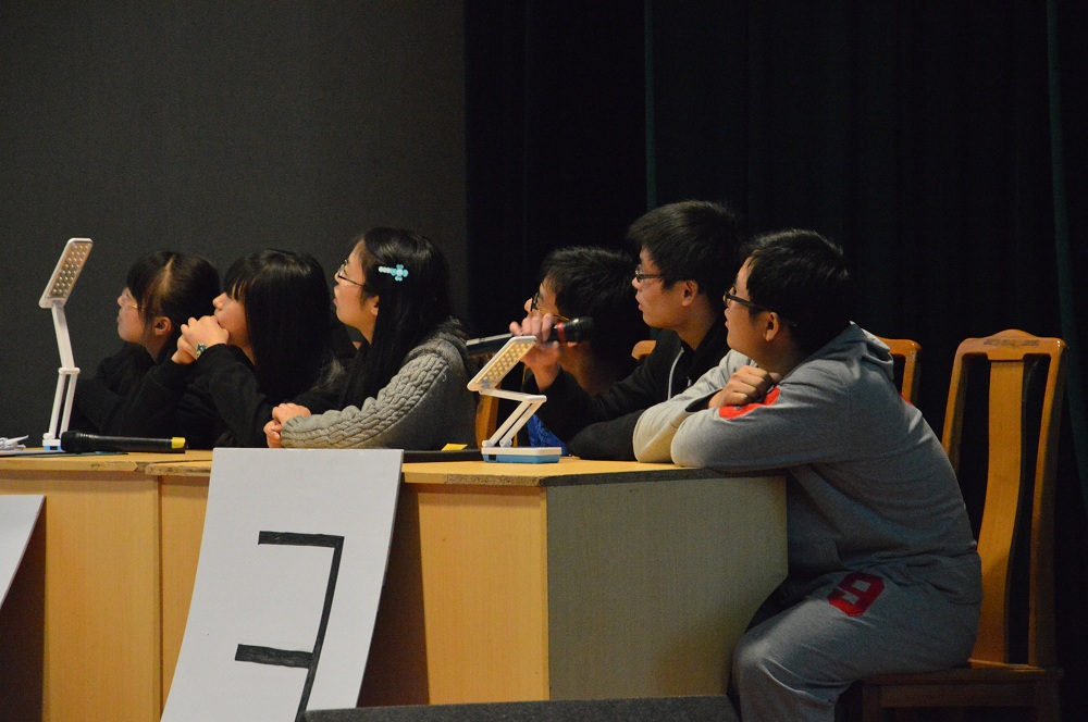 本次决赛,共有12支来自不同学院的队伍参加,每只队伍都精神焕发,斗志昂扬。比赛分为两轮,第一轮将12支队伍分成4组,每组通过比拼,选出一支优胜队伍,进入第二轮。在第一轮的“争分夺秒”“指手画脚”“眼疾手快”环节中,选手们凭借着渊博的知识和丰富的表演能力,赢得了观众的阵阵喝彩与欢呼。第二轮分为“自主选择题”“电影猜猜猜”“超级冲锋题”三个环节,比赛中,选手们表现镇定,自信果断,为自己的队伍奋力拼搏,紧张的气氛逐步将比赛推向高潮。终于在激烈的拼杀之后,大赛圆满决出冠亚季军。