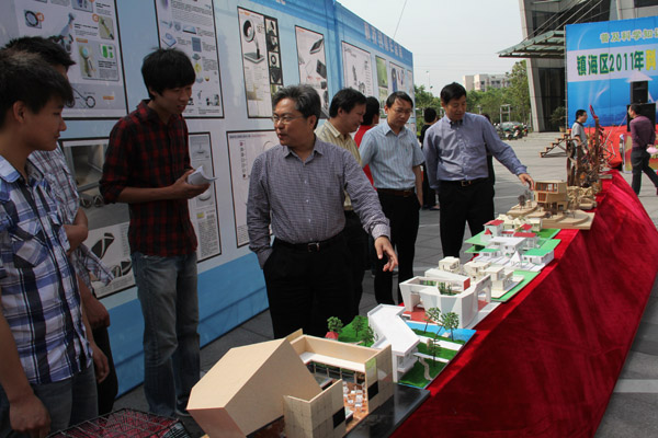 学生展示了具有建工特色的科技创意作品,吸引了许多市民驻足观看,区委副书记、区长陈召华还就吃瓜网