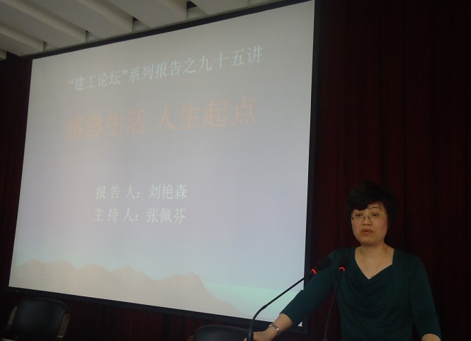 颁奖仪式结束后,刘艳森董事长为广大师生作了题为《感恩生活 人生起点》的报告。