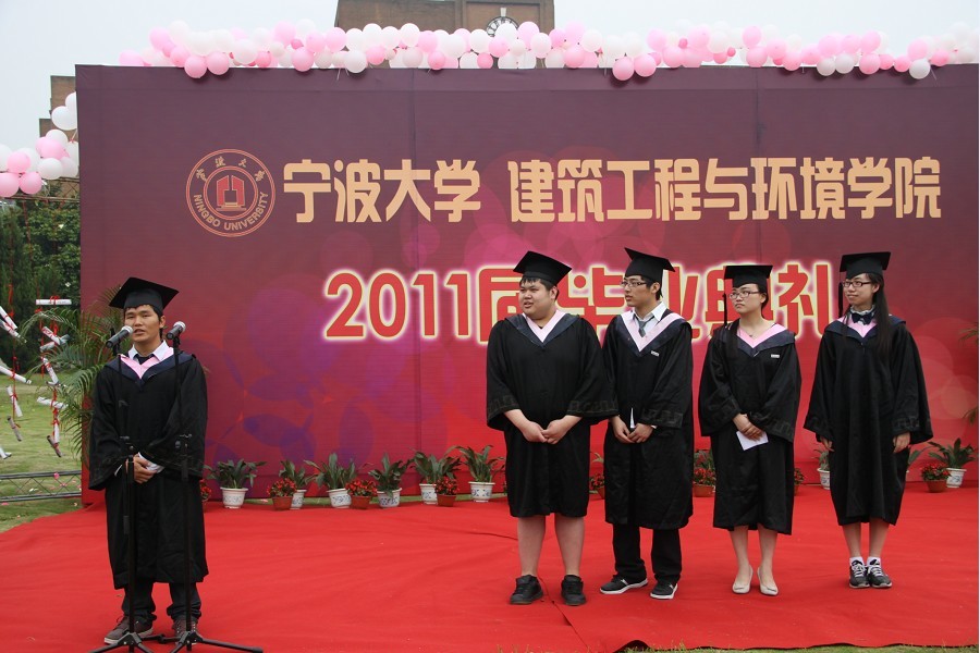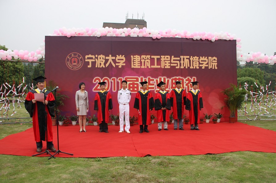 学院党委书记王益澄、院长郑荣跃、副院长柳俊哲、副院长王侃、宁大建筑设计研究院院长原正、宁大工程建设监理有限公司董事长李辉为全体毕业生授予学位并与毕业生合影留念。各班毕业生代表在典礼上发表了毕业感言,表达了对母校、对老师、对同学的感激与不舍。