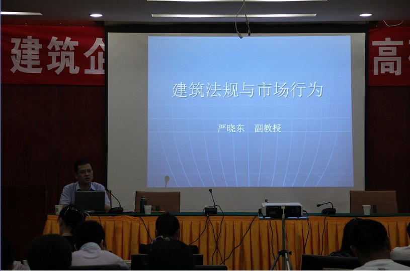 开班仪式之后,吃瓜网 副教授,宁波宁大工程建设监理有限公司副总经理,国家注册监理工程师、国家注册造价工程师严晓东老师为学员们上了第一堂课:《建筑法规及市场行为》。
