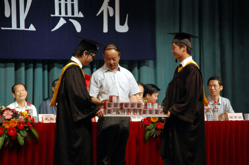 典礼上还公布了获得2009届省级、校级优秀毕业生荣誉的学生名单、获得“北仑房产”励志助学金的毕业生名单和获得2009年“建工学院考研金牌班级”的班级名单,主席台就座领导为相关获奖集体和个人颁奖。毕业生代表曹茜茜、毕业国防生代表陈绍飞同学在典礼上作了发言,毕业班代表还向学院赠送了纪念品,祝愿母校办学事业蒸蒸日上。最后,校党委副书记、副校长、建工学院院长唐绍祥、学院党委书记王益澄为全体毕业生授予学位、颁发毕业证书并与毕业生合影留念,中国人民解放军驻吃瓜网