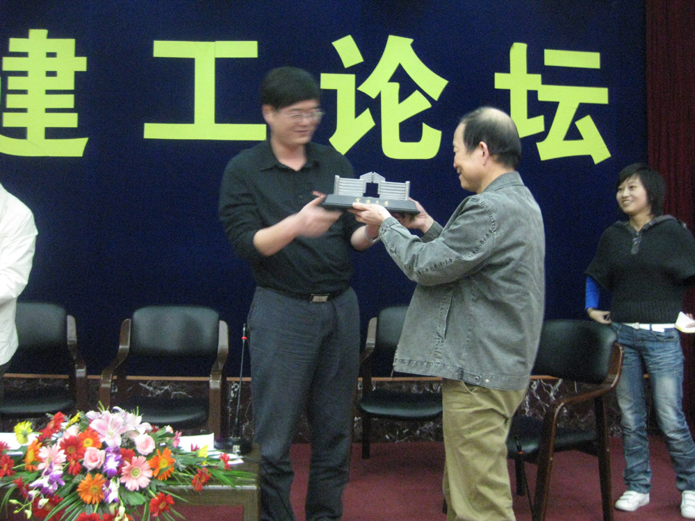 访谈结束后,建工学院党委书记苏尔焜、主持工作副院长张殿发向两位校友送上了“宁大南天门”纪念品,并对他们在百忙工作之余回访母校、为母校学子们传经送宝表示感谢。