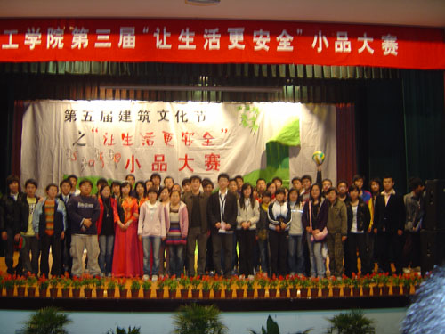 参赛队伍以07级班级为主,他们围绕主题,精心策划编排节目。演员们投入的舞台表演令台下的观众们忍俊不禁,鲜明的主题又不乏教育意义,台上演出高潮迭起,台下观众掌声不断,比赛在轻松愉悦的气氛中圆满结束。最终,建筑07的作品《校园偶像》以鲜明的主题,诙谐表演,赢得评委、观众们的一致好评,获得一等奖。