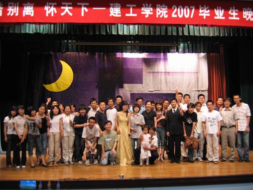 “惜离别,怀天下――建工学院2007毕业生晚会”于6月9日晚在锦绣小剧场隆重举行。学院主持工作副院长张殿发、院党委副书记张佩芬等出席晚会现场。