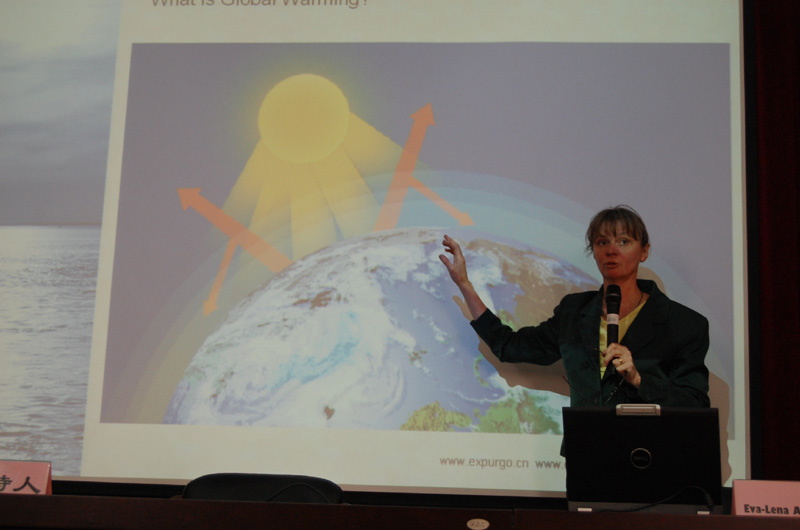 Eva-Lena Aronsson女士是瑞典籍化学工程师,在瑞典环境保护领域享有很高声誉和杰出贡献。1978年开始她的化学研究生涯。多次参与瑞典以及周边国家环境保护活动,多次为瑞典高校的学生讲授相关知识。她在报告中就全球的环境问题进行了简要分析,并从可持续发展的角度,针对如何解决水、气、废、生态等问题进行了详细讲解,其中还介绍了3R和LCA理念,受到了广大师生的欢迎。Eva-Lena Aronsson女士一行还与吃瓜网
