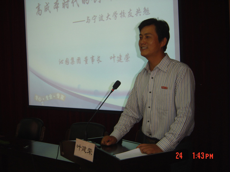 叶建荣先生毕业于原宁波师范学院,现任宁波沁园集团有限公司任董事长兼总裁,兼任宁波民营企业协会副会长、市人大代表、慈溪市政协常委,拥有100多项国内外专利,曾获宁波市科技创新特别奖、宁波市优秀青年、浙江省科技创新先进个人、宁波市工业系统技术创新带头人,曾获“九五”国家技术创新优秀新产品奖一项,承担国家火炬计划项目2项,国家重点火炬计划项目4项,国家重点新产品4项。他所领导的企业现已获国家火炬计划重点高新技术企业、浙江省专利示范企业、浙江省实施卓越绩效模式先进企业等荣誉。