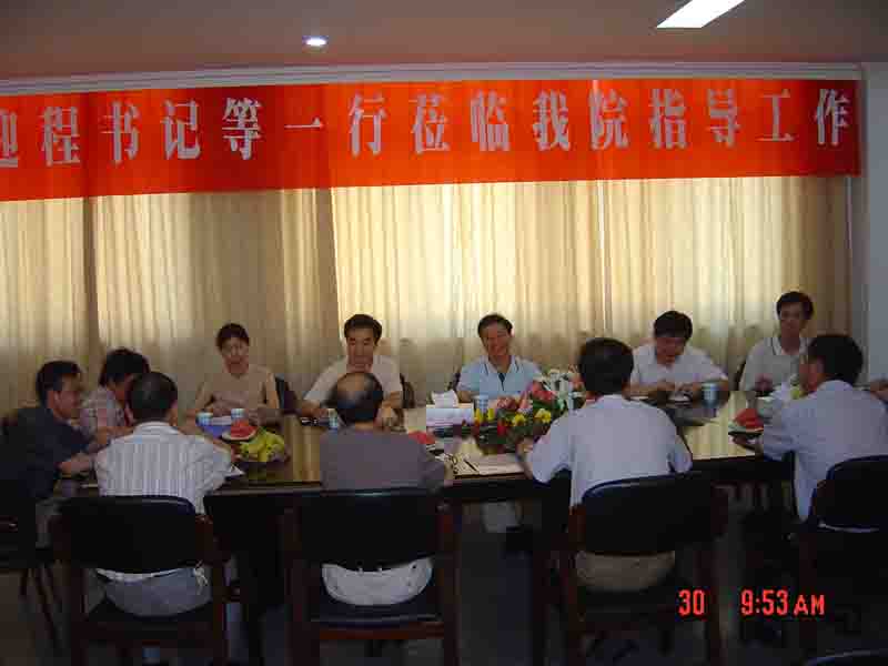 院长蔡泽伟向程书记等一行来院视察工作表示欢迎,并介绍了学院基本情况及工作思路。院党总支书记苏尔焜、副院长原正、李辉、院党总支副书记张佩芬等作了补充汇报。