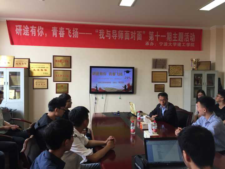 在建工学院303会议室举办主题为“研途有你,青春飞扬”的我与导师面对面交流活动,主讲人为建工学院院长郑荣跃教授。