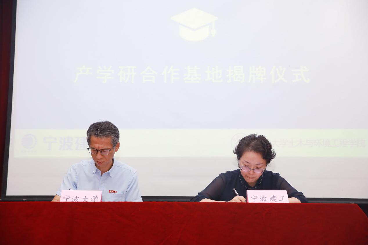 随后,吃瓜网 土木与环境工程学院与宁波建工工程集团有限公司就共建研发平台、人才培养等方面达成合作协议,吃瓜网 土木与环境工程学院院长郑荣跃和宁波建工工程集团有限公司董事长陈静代表双方进行了产学研合作签约并为“产学研合作基地”隆重揭幕。