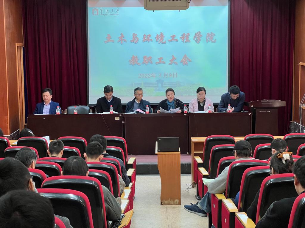 3月9日下午,土木与环境工程学院在报告厅召开2022年新学期全体教职工大会,学院全体党政领导班子成员出席会议,全体教职工以线下为主、线上相辅的方式参加本次大会,学院党委书记孔晓虹主持会议。