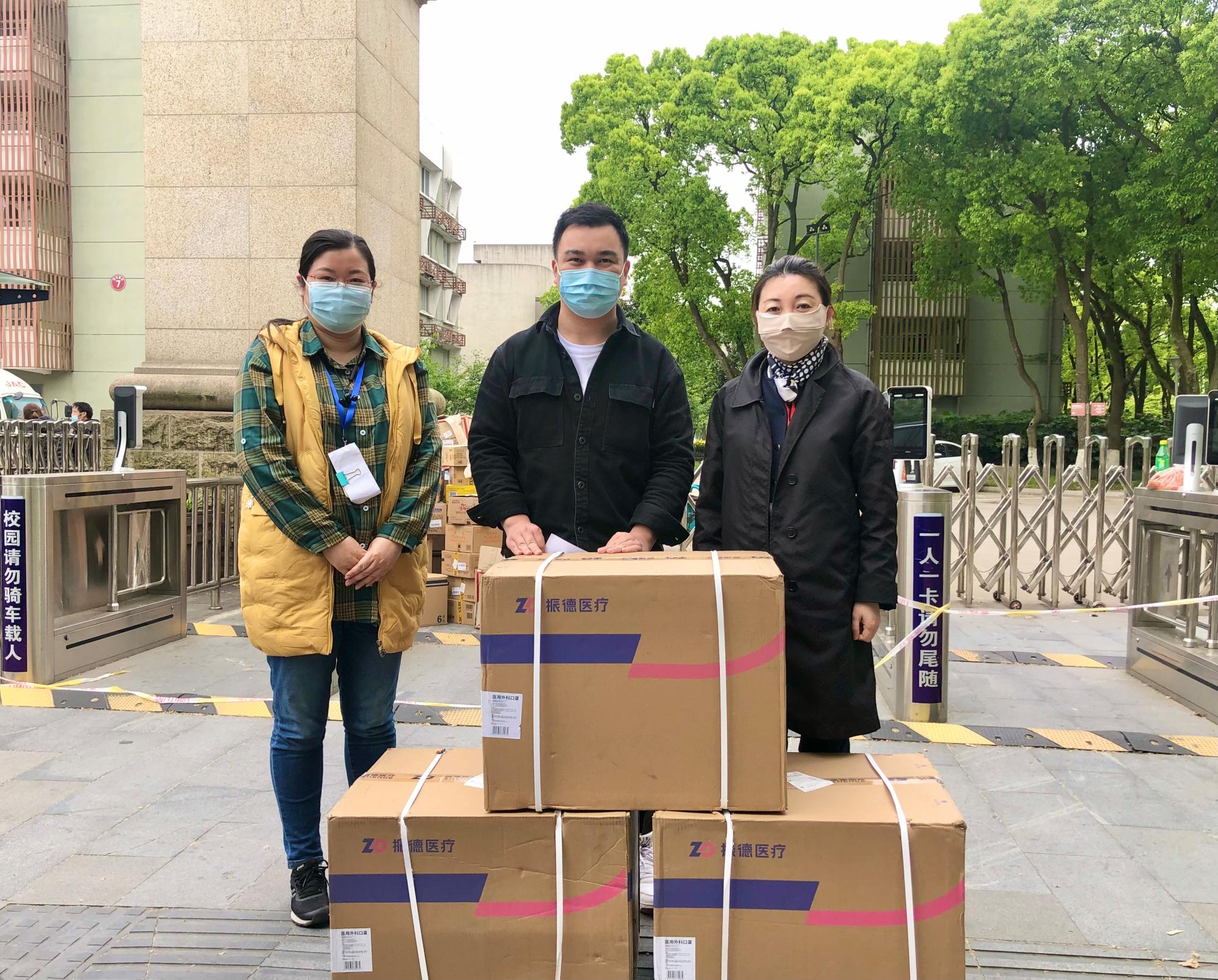 4月16日下午,宁大2008级校友、宁波触动文化传媒有限公司总经理卢振向土木与环境工程学院捐赠6000只医用口罩支援疫情防控。学院党委书记孔晓虹、副书记朱剑琼代表学院师生接受了捐赠物资。