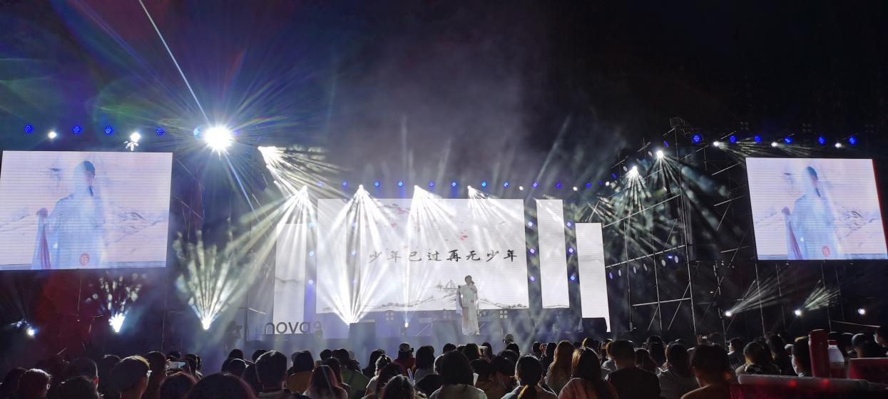秋夜满园星辰,月影朦胧夜凉,杨靖男从一开场就把大家拉入了那份忧绪之中,再加上中间京剧《望江亭》的小段,高低随意,舒展自如的唱出了有如柳永“夕阳鸟外,秋风原上,目断四天垂。归云一去无踪迹,何处是前期?狎兴生疏,酒徒萧索,不似少年时”那般的凄美;而最后的《天上掉下个林妹妹》越剧小段,又让人又回想起曾经那个少年,他们看春风不喜,看夏蝉不烦,看秋风不悲,看冬雪不叹,看满身富贵懒察觉,看不公不允敢面对,只因他们是少年。一曲唱罢,掌声欢呼声不绝入耳,在场观众也许说不出但一定都感受到了京剧越剧的美。