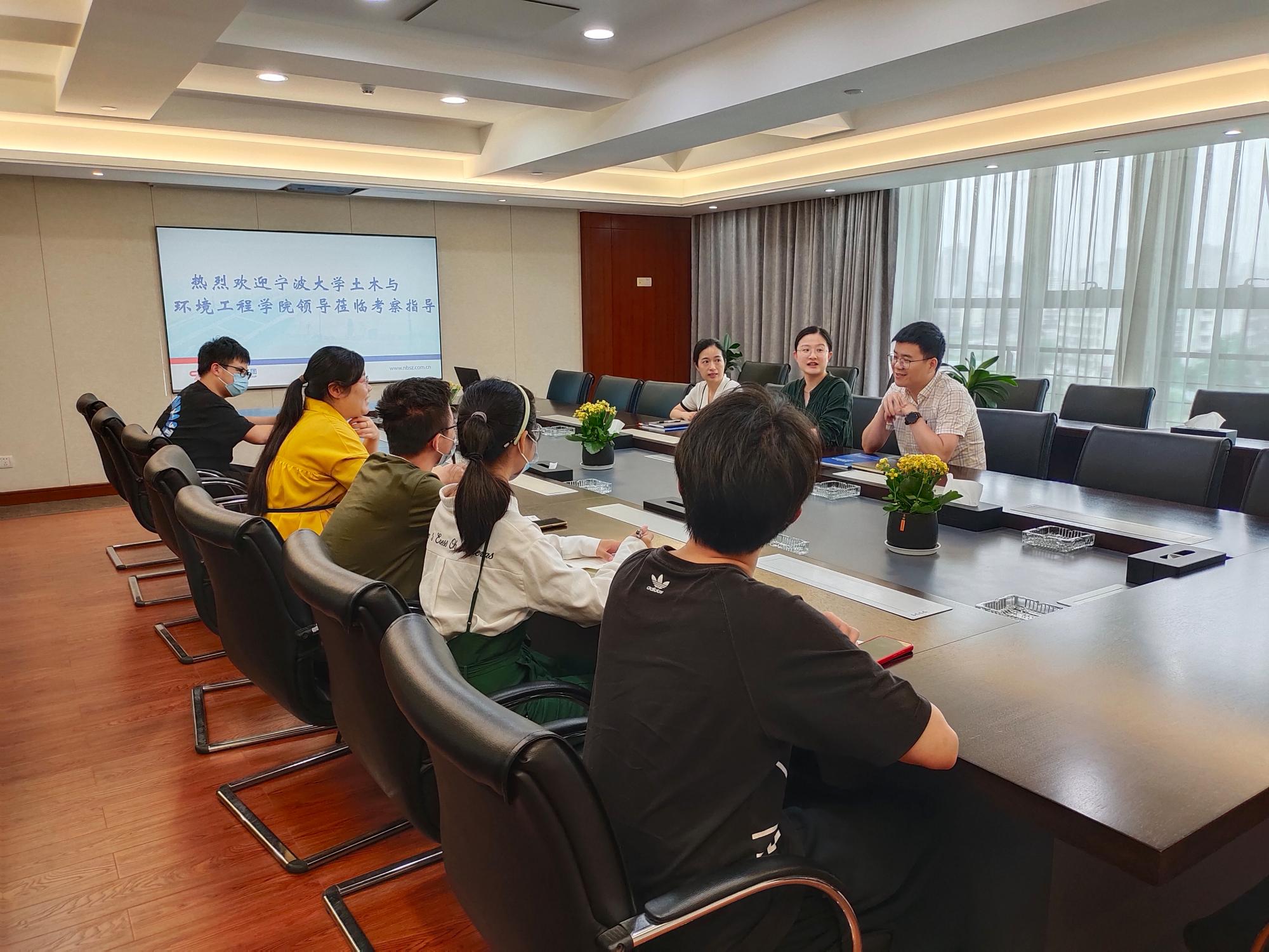 市政集团人力资源部经理、团委书记朱文吟一行热情接待了吃瓜网 师生。结合企业的宣传短片,朱文吟介绍了宁波市政集团的发展历程、现状和远景规划,着重介绍了与吃瓜网 朱志伟院士团队合作开展的“院士工作站”以及企业现有40余名毕业于吃瓜网 的优秀职工事迹。之后,双方就企业招聘录用吃瓜网 毕业生的情况及其职场表现进行了交流,同行的本硕学生则主要围绕各自的暑期社会实践主题,有针对性地开展了前期调研。交流过程中,市政集团的多个部门负责人都对宁大毕业生扎实的专业基础、踏实的工作作风和良好的精神风貌给予了高度评价。