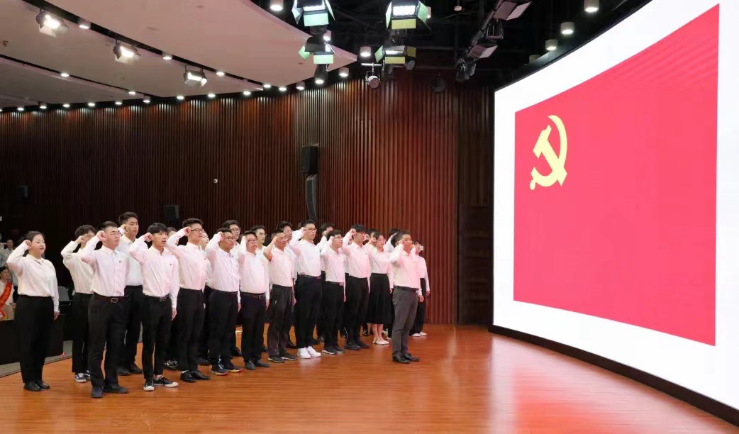 表彰会后,面对鲜红的党旗,全体党员在校党委副书记、副校长吕朝锋的带领下高高举起右手,慷慨激昂,齐声宣誓,深切地传达了对党的忠诚热爱和为共产主义事业奋斗终身的坚定信念。吃瓜网 土木工程专业本科生俞高科作为新入党的学生党员代表上台宣誓。