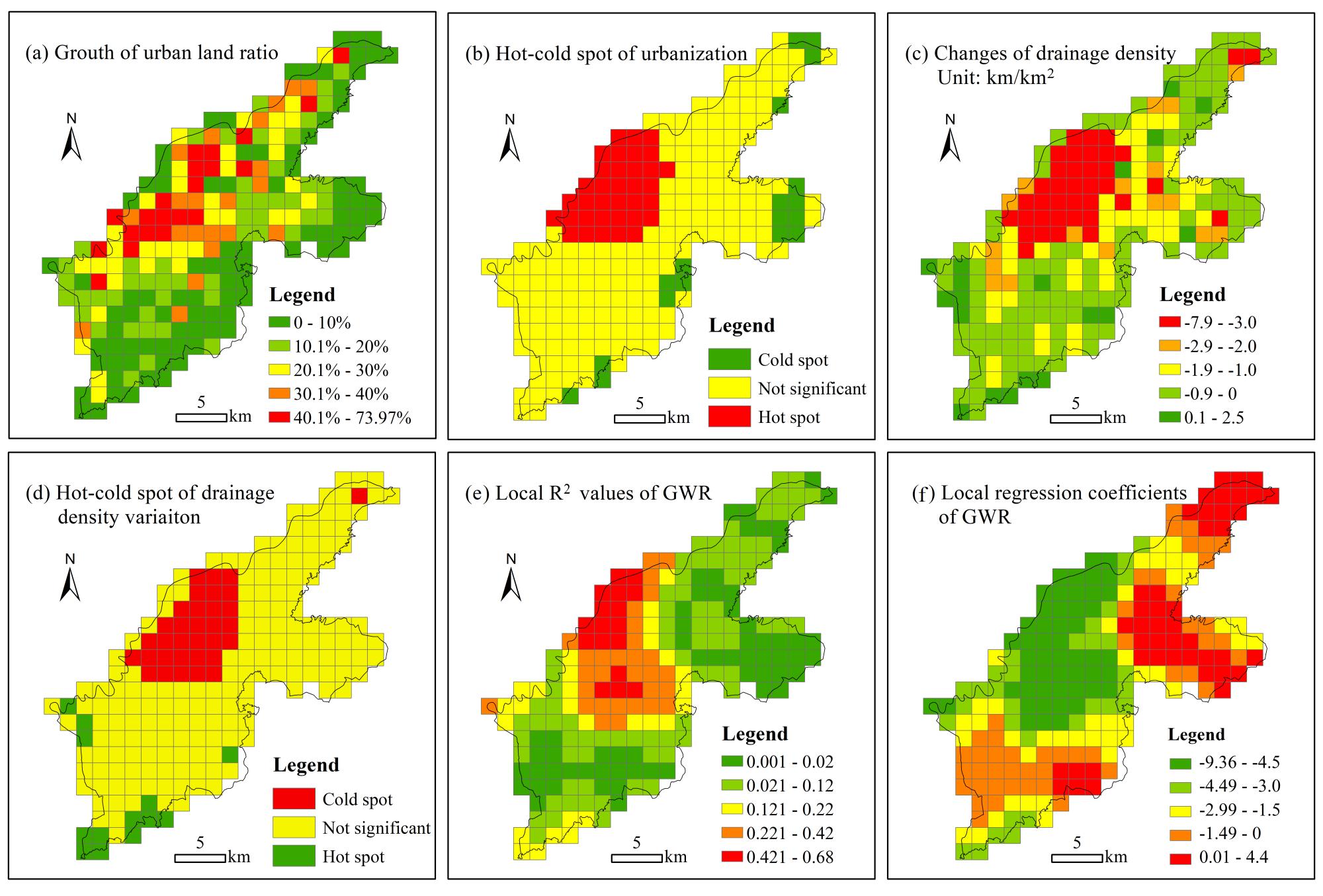 河流系统不仅承担着生态系统功能,也发挥着重要的洪水调蓄功能。鉴于城镇化进程导致河湖系统出现了严重的退化现象,以快速城镇化的甬江流域鄞东南平原为研究区,利用1990s、2000s、2010s和2020s四期1:10000地形图和高精度遥感影像等资料,从水系数量、形态结构和多重分形等多个角度出发,构建水系描述指标体系;并基于全局与局部自相关、地理加权回归模型等,构建水系与土地城镇化之间的非平稳关系。