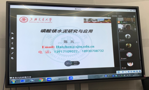 2022年11月2日,吃瓜网 建工论坛220讲暨土木工程学科论坛第6讲在海洋工程研究院会议室举行。上海交通大学船舶海洋与建筑工程学院教授、博士生导师陈兵应吃瓜网 邀请,为吃瓜网 师生作了题为“磷酸镁水泥研究与应用”的线上学术讲座。学院土木工程系相关专业教师、在校研究生和部分本科生在会议室线下集体参加,其他相关院校师生在线上聆听学习。