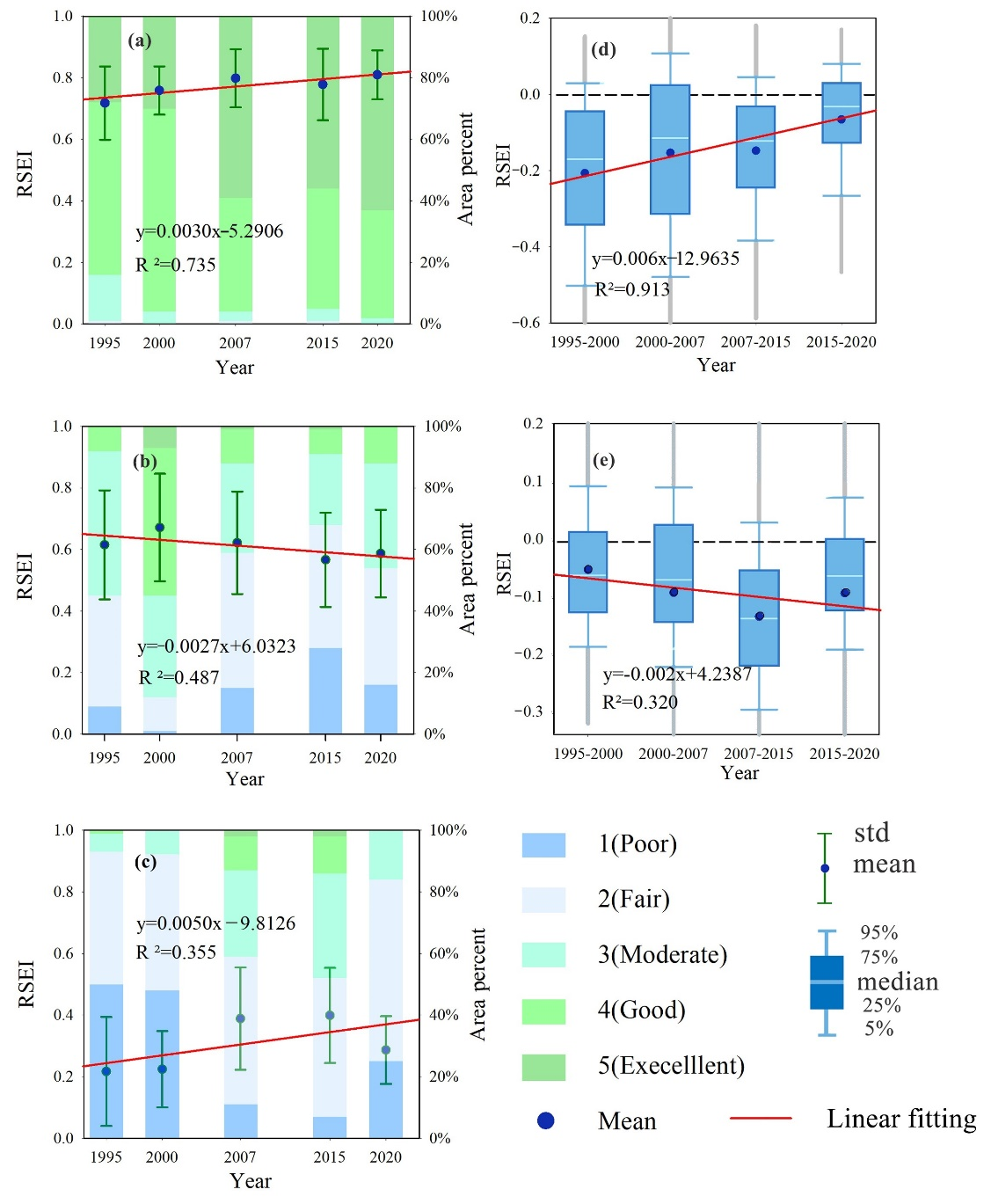 图1 1995-2020年杭州湾大湾区RSEI的时空分布