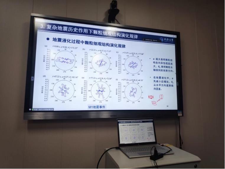 报告中首先通过对相关地震案例的分析,指出不同地震历史下场地的液化现象存在诸多差异,接着课题组基于离心机和振动台物理实验模型试验对不同地震作用工况下的砂土抗液化能力进行了研究,开发了细观教学图像采集系统,揭示了复杂地震历史下砂土液化的细观机理,包括砂土颗粒的运动状态及各项异性的演化规律。在此基础上,利用DEM方法建立数值试验模型,系统地研究了前期非液化和液化历史对再固结试样力学性质的影响规律,发现了砂土三维微观组构与再液化抗力之间的联系,完善了地震液化影响因素分析理论,为场地液化灾害风险评估提供科学依据。