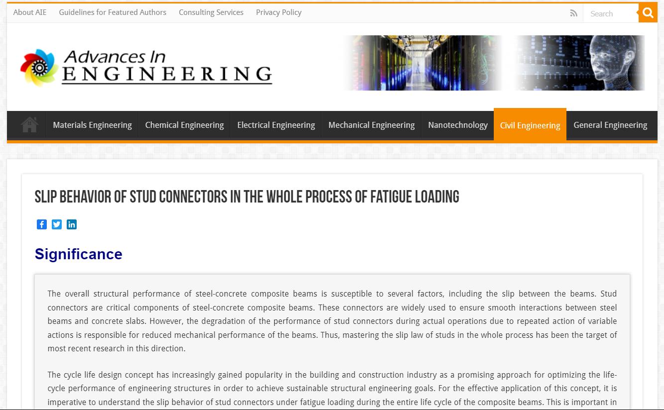 AIE报道链接://advanceseng.com/slip-behavior-stud-connectors-whole-process-fatigue-loading/