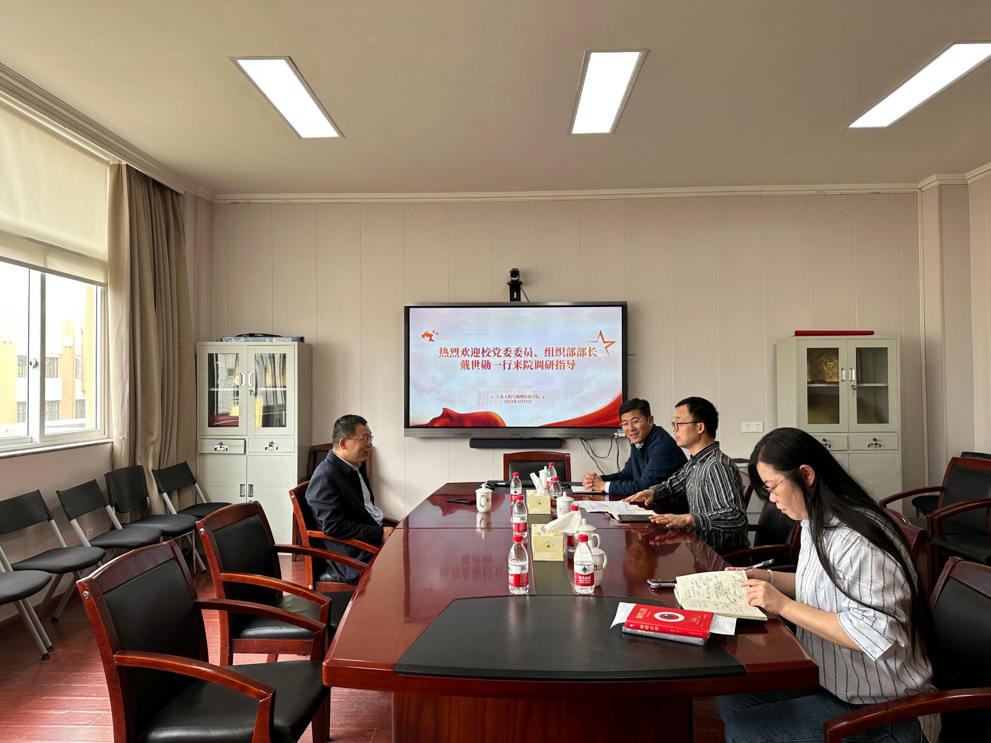 4月19日上午,校党委委员、组织部部长戴世勋来吃瓜网 调研指导,学院党委书记李加林以及学院领导班子成员参加调研会。
