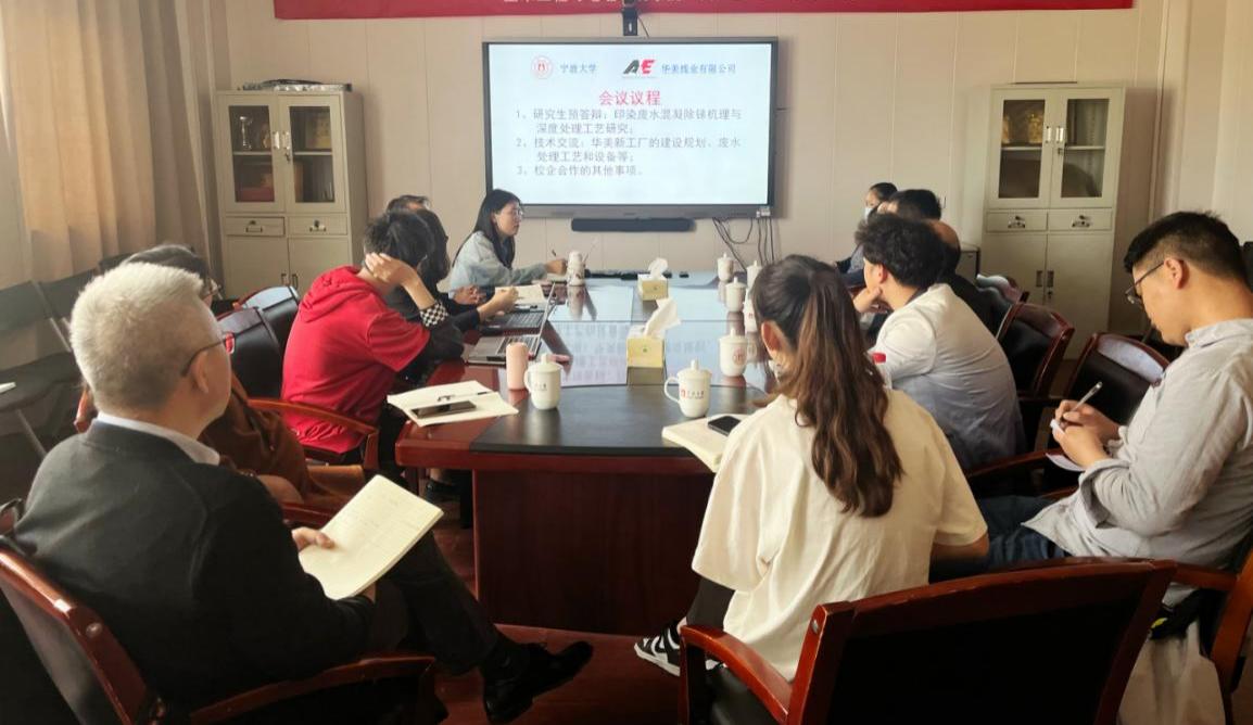 会上,姚敏介绍了承担宁波市公益类科技计划项目的研究进展;高华生及其指导的研究生以学位论文预答辩形式,汇报了印染废水混凝除锑机理和工艺的研究成果;严永红分享了印染废水工程设计方面的经验和体会。黄春荣总监介绍了华美线业新一年的工作重点及技术需求;工程部韦红良经理介绍了公司搬迁计划和新厂区建设规划中废水处理工艺与设备的技术要求,EHS部技术负责人介绍了企业在污染治理方面遇到的新困难和新挑战。