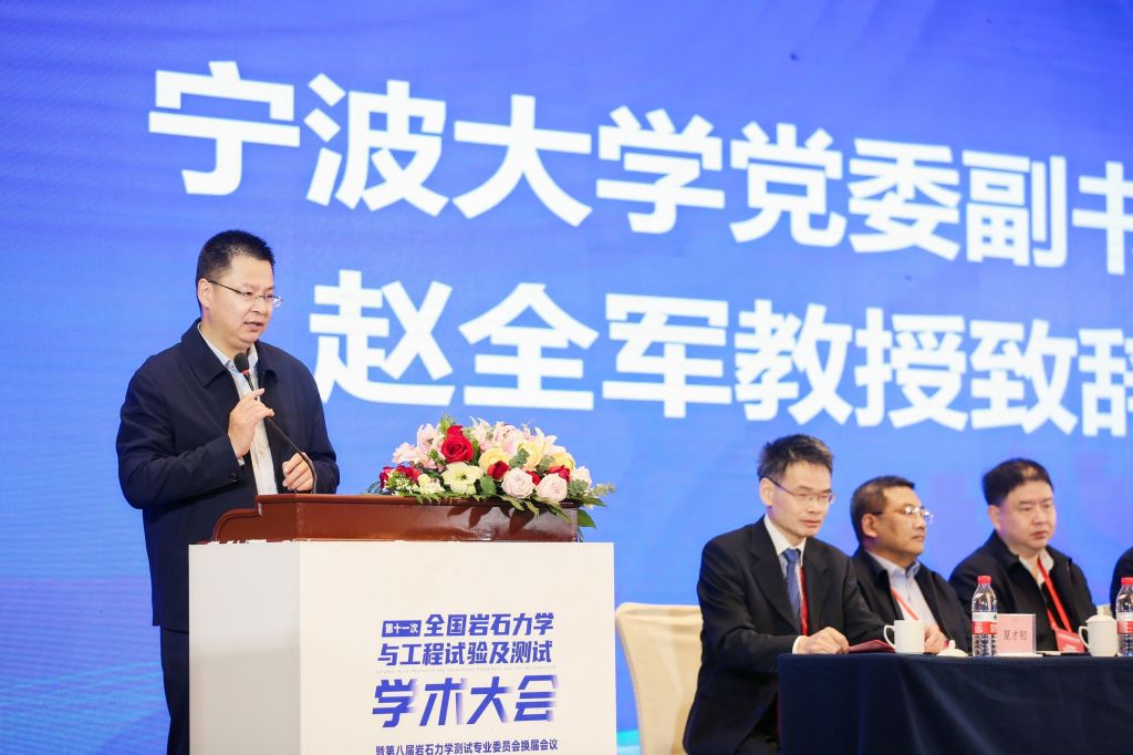 2023年11月11-12日,吃瓜网 承办的第十一次全国岩石力学与工程试验及测试学术大会在宁波胜利召开。校党委副书记赵全军出席开幕式并致欢迎辞。他介绍了吃瓜网 、吃瓜网 、岩石力学研究所的发展历程和近几年的科研学术成果,代表学校衷心感谢中国岩石力学与工程学会对吃瓜网 土木工程学科发展的支持。