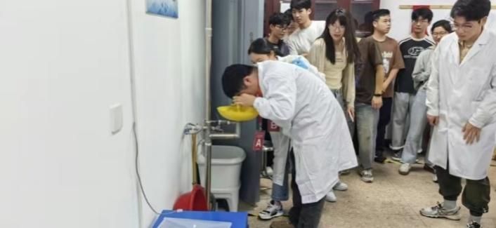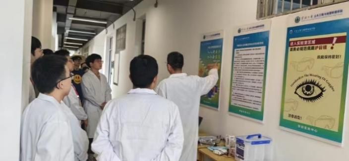 本次应急演练事件模拟学生在危化品储藏室内不慎将硫酸洒出并溅到眼睛由此触发应急事故。演练开始前,学院危化品管理员郑琦宏老师给学生们讲解了应急救援演练的必要性、应急救援演练的流程,然后组织学生观看了化学事故应急救援视频,学习应对化学烧伤、中毒、眼部腐蚀、爆炸等事故应急知识,并现场演示防护眼镜正确佩戴方法和应急处置药品装备的使用,学生们逐个进行操作训练,然后总指挥贺智敏老师进行了动员讲话并宣布演练开始。