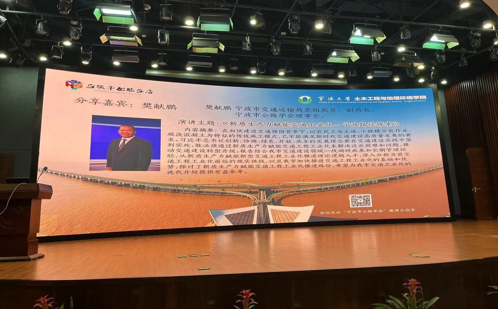 和宁波市公路学会加强校企联动的又一次重要体现。在国家大力倡导发展新质生产力的背景下,邀请行业专家共同探讨“新质生产力如何赋能交通建设行业发展”这一重大课题,具有非常重要的现实意义。