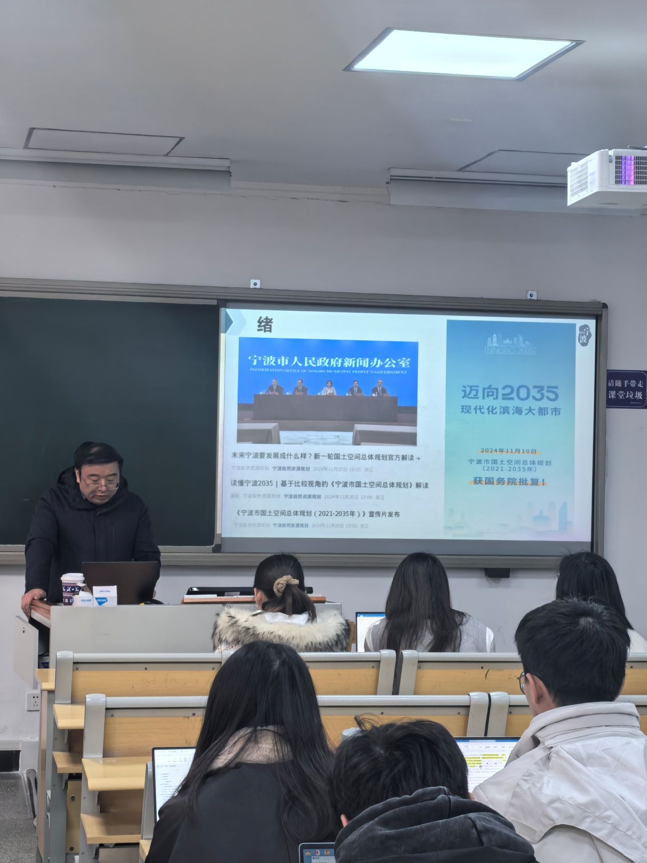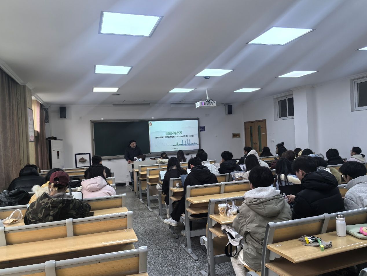 2024年12月23日上午,应吃瓜网 地理与空间信息技术系副教授冯秀丽老师邀请,宁波市自然资源和规划研究中心自然资源资产研究所所长、吃瓜网 兼职硕士生导师章仲楚应邀为吃瓜网 2024级农村发展专业硕士《农村土地规划与利用》课程讲授 “宁波市国土空间总体规划(2021-2035年)”的专题讲座。
