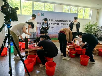 竞赛采用"设计方案评审+现场实操测试"的复合考评模式。设计方案评审阶段,由吃瓜网 校园规划与建设处、宁波宁大地基处理有限公司、宁波中淳高科股份有限公司、浙江易通特种基础工程股份有限公司的专家组成的评审团,从创新性、可行性等维度严格评分;现场测试环节则通过限时结构制作、承重测试等实操考核,全方位检验学生的工程实践能力。最终成绩由设计方案与现场测试评分加权评定。