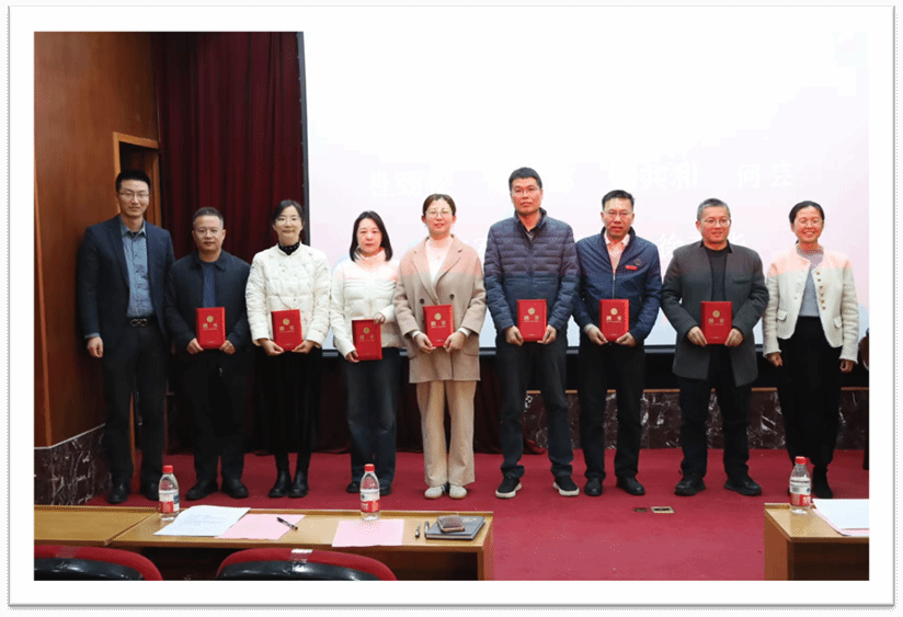 随后,学院学位评定分委员会主席、副院长章子华郑重宣读聘任文件。在全场热烈的掌声中,学院领导为受聘兼职硕士生导师逐一颁发聘书并合影留念,这标志着各位行业翘楚正式加入学院研究生培养队伍,成为协同育人路上的重要伙伴。章子华教授在发言中向受聘导师表示热烈祝贺,他指出,各位新聘导师深耕的专业领域,既是学院学科建设的核心方向,更是支撑区域高质量发展的关键领域。兼职硕士生导师是学院研究生培养体系的重要组成部分,希望各位导师充分发挥行业资源优势与丰富实践经验,与校内导师同心协力、优势互补,助力研究生成长为兼具理论深度与实践能力的复合型高素质人才,为行业发展注入新生力量。