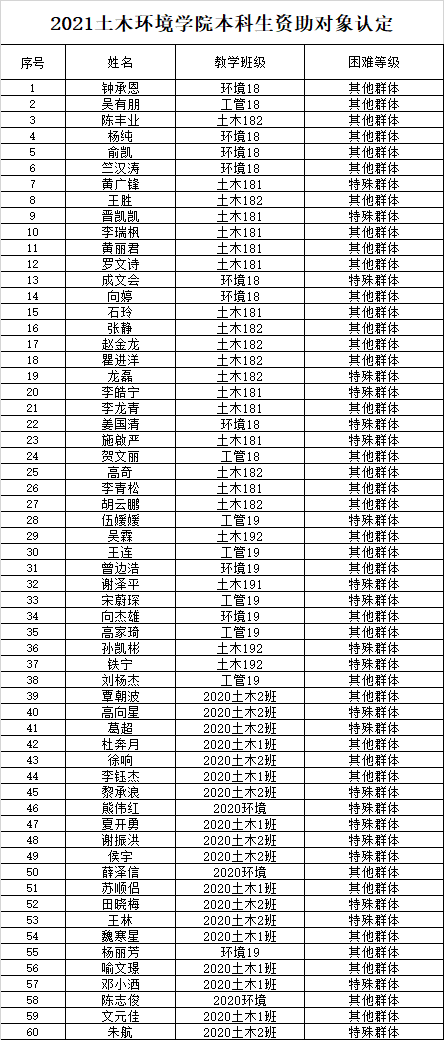 经本人申请,班级评议小组评议,班主任审核,学院审核,本科生资助对象认定工作已结束,现予以公示,公示期为9月30-10月1日,公示期内有任何疑问,可以联系王朝东老师,电话578527,邮箱[email protected]