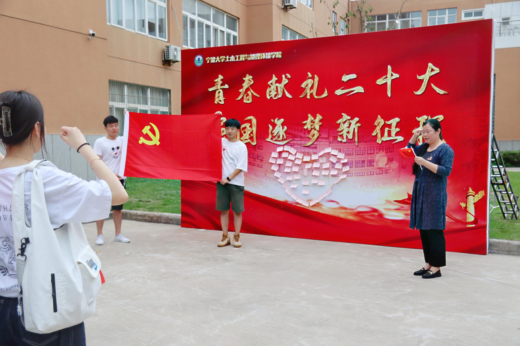 活动中,学院党委副书记、纪委书记朱剑琼带领全体党员重温了入党誓词。土木水利研究生党支部书记成伟双手挥着小国旗,激动地向祖国表白:“我们青年党员会继续不忘初心,牢记使命,以昂扬的奋斗姿态迎接党的二十大召开,祝福祖国母亲,生日快乐!”