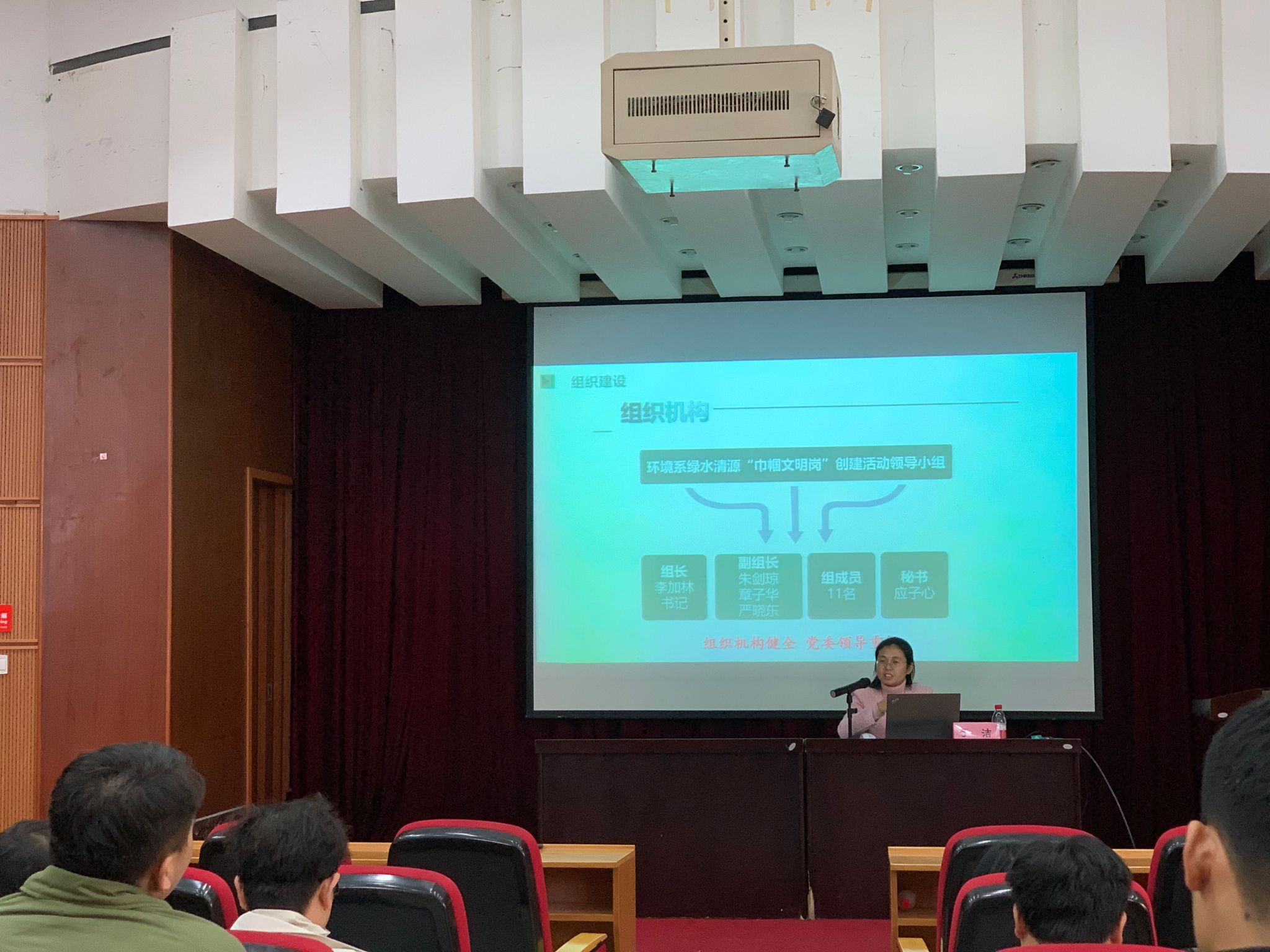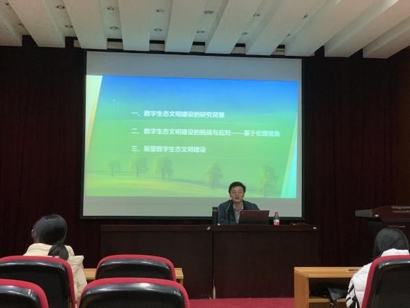 于洁老师紧扣新时代生态文明建设思想主题,深入阐释生态文明建设的时代特征与重要意义,佐以实际案例与专业知识,彰显党和国家在生态文明建设进程中的不懈努力与卓越智慧。后半程,于老师详细介绍学院环境系绿水清源 “巾帼文明岗”的相关情况,生动的讲述了其成员以守护绿水青山、助力美丽中国为信念,坚守环保初心,深耕生态保护研究,全力服务国家生态文明建设大业,于老师亦借此激励学员以巾帼岗为楷模,积极投身环保事业,为生态文明建设奉献青春力量。