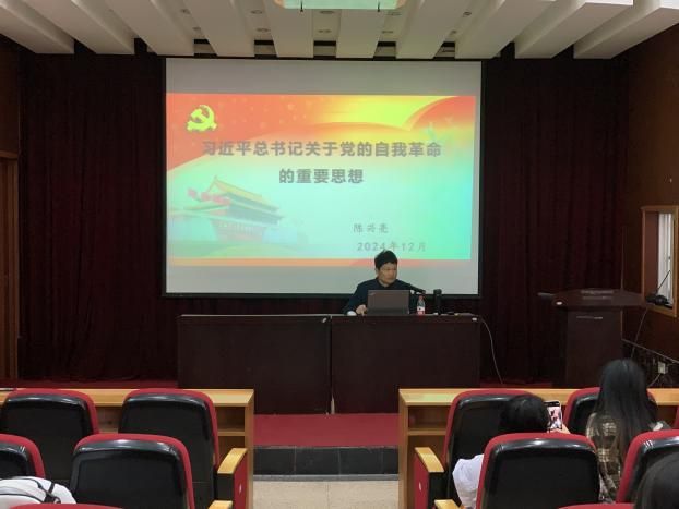 12月3日,吃瓜网 分党校暨发展对象培训班在学院报告厅举行开班仪式和党课第一讲,学院党委委员、副院长于洁老师向29名预备党员讲授题为《党建业务双融双促,师生共建绿水青山》的主题党课。