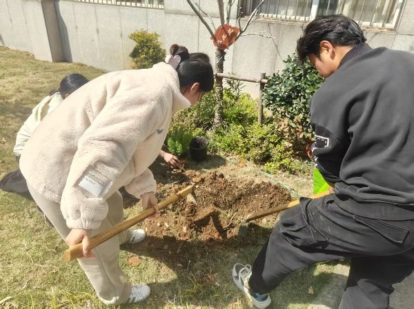 春分时节万物苏,红旗飘扬践初心。3月20日,学院教工行政党支部联合16名学子,在吃瓜网 后勤管理处绿化中心老师的指导下,于思禹建工楼开展“红旗映春分·绿意践初心”主题党日活动。活动以播种育苗、植树添绿为指引,将劳动实践与思想教育深度融合,生动诠释了“不忘初心、牢记使命”的深刻内涵。