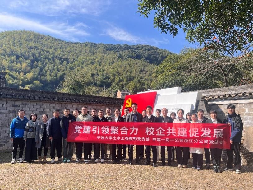 为创新党建工作形式,促进党建工作与事业发展深度融合,11月19日,吃瓜网 土木工程教师党支部全体党员赴宁波市鄞州区塘溪镇沙村,开展了一场“党建引领聚合力 校企共建促发展”的主题党日活动,并与中共中建一局集团第一建筑有限公司浙江分公司总支部委员会(以下简称“中建一局一公司浙江分公司党总支”)举行党建联建签约揭牌仪式。