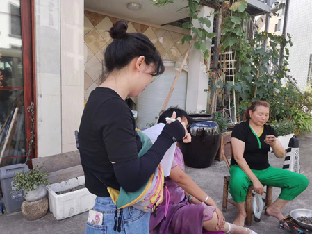 7月1日,同学们分组到黄公岙村对村民进行访谈。通过简单轻松的聊天,询问村民们的一些基本生活状况,探究象山影视城修建以后村子里发展建设情况、居民生活环境、经济条件以及文化变迁。在“乡村振兴、共同富裕”的主题背景下,通过实地调研,了解影城建立后周边乡村发展的真实状况,倾听村民的真实感受。