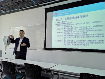 俞炯志老师在课堂上收放自如、幽默风趣。本节课程以象山县教育局最新发布的家校合作的通知为例,引入中学地理校本教材设计的主题。然后,俞老师为同学们讲解了在校本课程开发和设计过程中领导与管理的知识,以及学校和区域两个层面上校长、副校长、教育局及其下属教研室和教研员发挥的领导作用。最后,俞老师解读了校本课程实施和管理过程中应注意的问题,并鼓励学生未来在工作岗位上培养开发校本课程的意识,做好教师生涯职业规划。