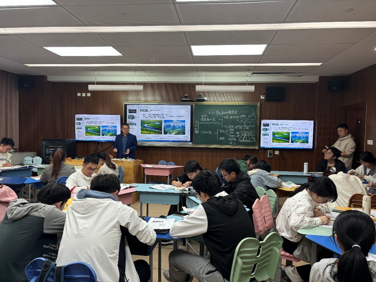 根据《地理教研创新训练》课程目标要求,本次活动邀请了正在宁波市第四中学进行教育实习的21级地理科学(师范)班同学,按照同课异构授课的形式讲授中学地理必修一第四章第一节《常见地貌类型》喀斯特地貌和河流地貌部分内容,随后进行了师生评课与教学设计讨论、交流。通过本次活动,同学们在解读课标、分析学情、建立地理教学逻辑等方面有极大收获,对课堂活动设计和实际授课讲演方式有了更深刻的理解。