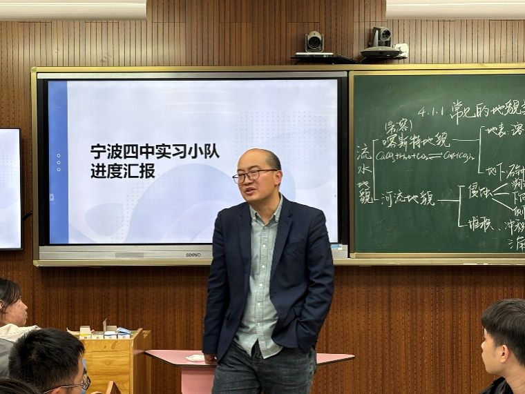 地理与空间信息技术系马仁锋老师、袁海红老师带领22级地理科学(师范)班同学来到宁波四中,观摩21级地理科学(师范)的实习教师刘晴、张盈欣带来的《常见的地貌类型》课堂。同时,马仁锋老师、袁海红老师作为宁波四中实习小组的高校带队教师,检查了实习小组的实习工作进展。