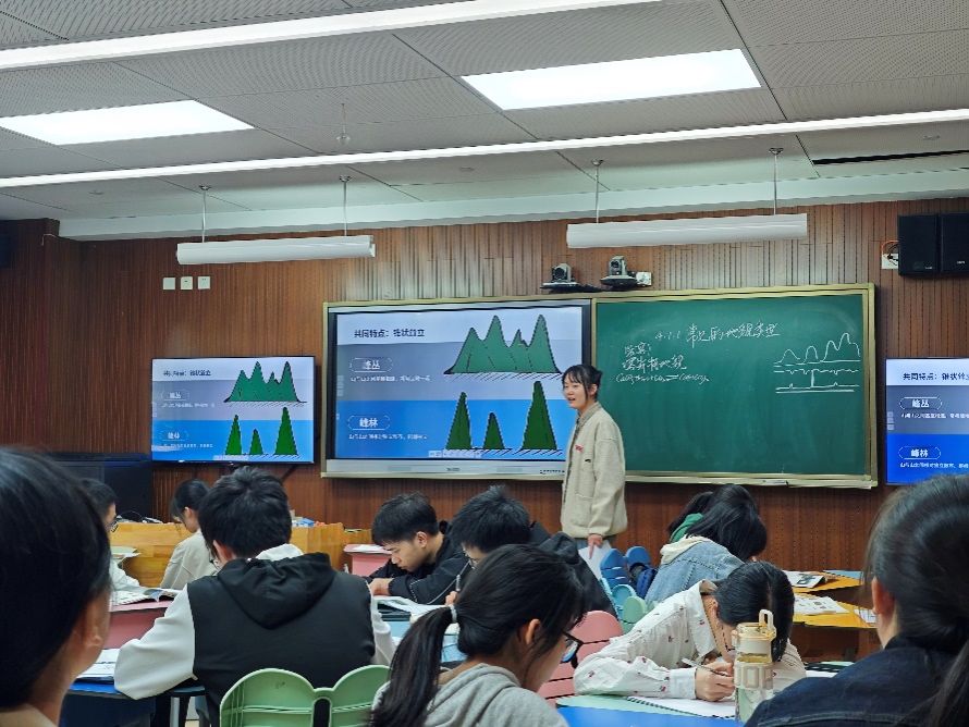 活动伊始,实习教师刘晴、张盈欣按照同课异构授课的形式讲授了高中地理必修一第四章第一节《常见的地貌类型》中的喀斯特地貌与河流地貌部分内容。