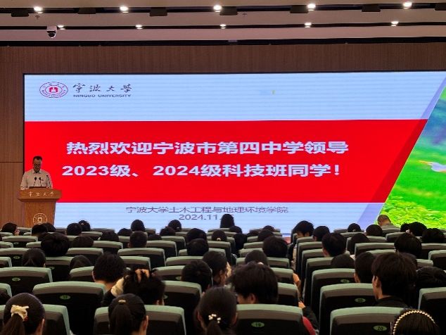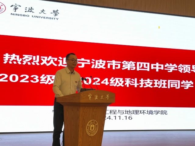执行院长兼副书记李加林教授致辞,向宁波四中的各位老师和同学们表示热烈的欢迎。李加林教授希望各位同学通过打开科研世界的大门,筑梦未来征途,并祝愿所有老师和学生能够遇见更好的自己。