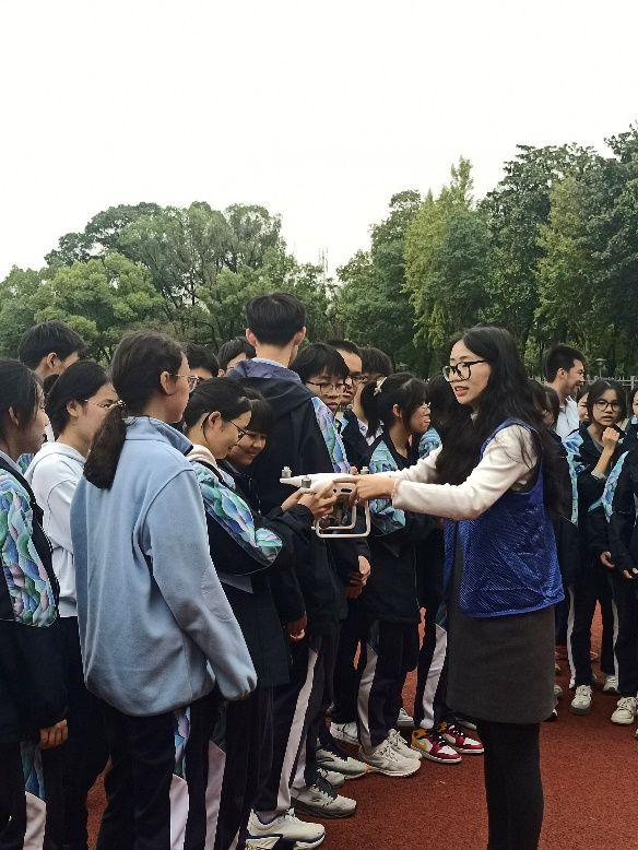 地理与空间信息技术系王利花副教授带领研究生向同学们演示无人机操作,邀请四中学子在各位研究生志愿者的帮助下体验了操作无人机。