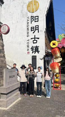 结束在阳明古镇的调研后,我们步行前往王守仁故居纪念馆。在门口,马老师简要提出了参观实习的注意点,还布置了打卡对联真迹的趣味任务。随后,同学们以小组为单位,进入景区内自行参观,感受古人的建筑艺术、体悟王阳明的思想内涵。