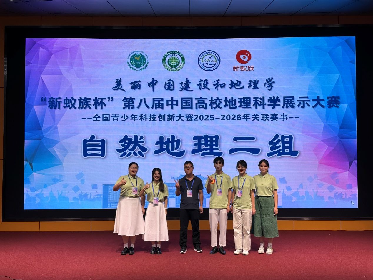 本届大赛以“美丽中国建设和地理学”为主题,地理科学(师范)23级、24级共15名学生组建三支队伍,在地理与空间信息技术系多位教师全程指导下参加了本次比赛,共斩获国家级奖项3项。由刘永超副研究员和李加林教授指导的“共生空间研究组”获自然地理组一等奖,由许洺山副教授和杨晓东教授指导的“黄迹寻踪”队荣获自然地理组二等奖;由马仁锋教授、陈妤凡讲师、高兴川副教授指导的“阳明寻迹”队斩获人文地理组一等奖。